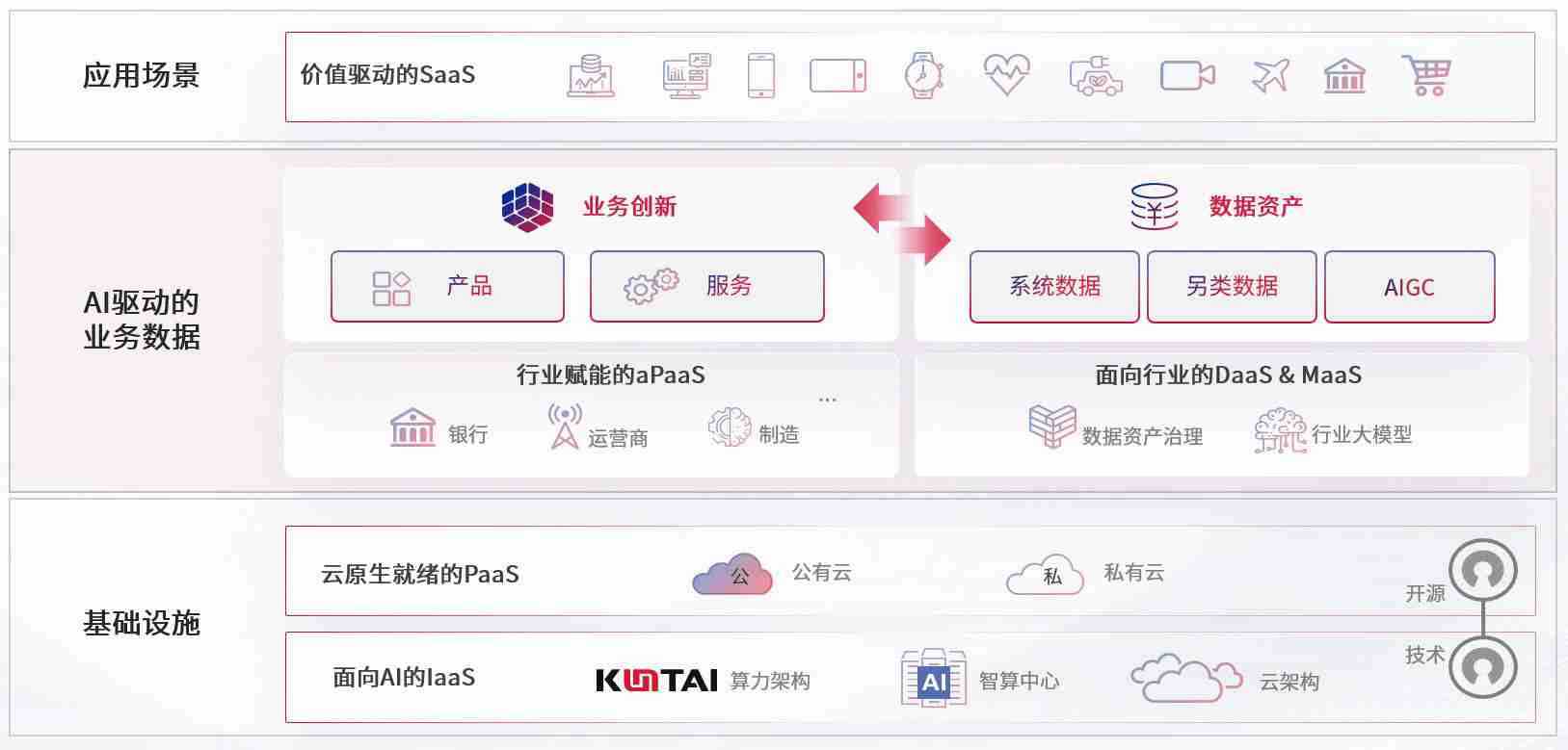数字时代,,,围绕企业数字化转型的关键要素,,,赏金大对决数码开创性的提出数云融合战略和技术体系框架,,,着力在云原生、、、、数字原生、、、AI原生和信创产业上架构产品和服务能力,,,为处在不同数字化转型阶段的快消零售、、汽车、、、、金融、、、医疗、、政企、、、、教育、、运营商等行业客户提供泛在的敏捷IT能力和融合的数据驱动能力,,,构建跨界融合创新的数字业务场景和新业务模式,,,助力企业级客户建立面向未来的核心能力和竞争优势,,,,全面推动社会的数字化、、、、智能化转型升级。。。